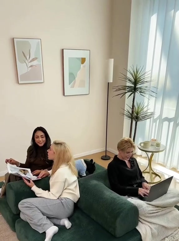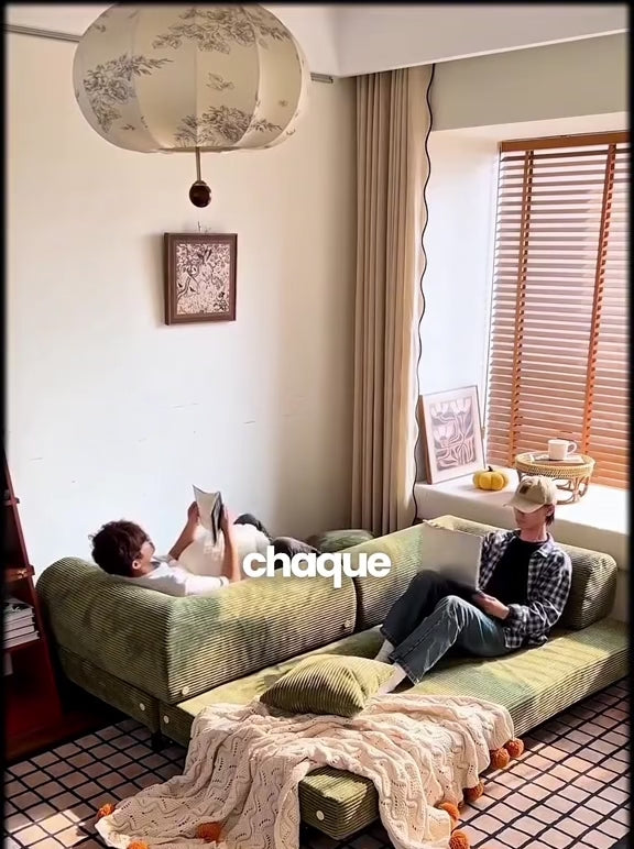 Komu Home est la marque n°1 des Français en canapé modulable. Le Sora est léger, se transporte facilement et s'adapte à toute configuration d'espace d'intérieur.